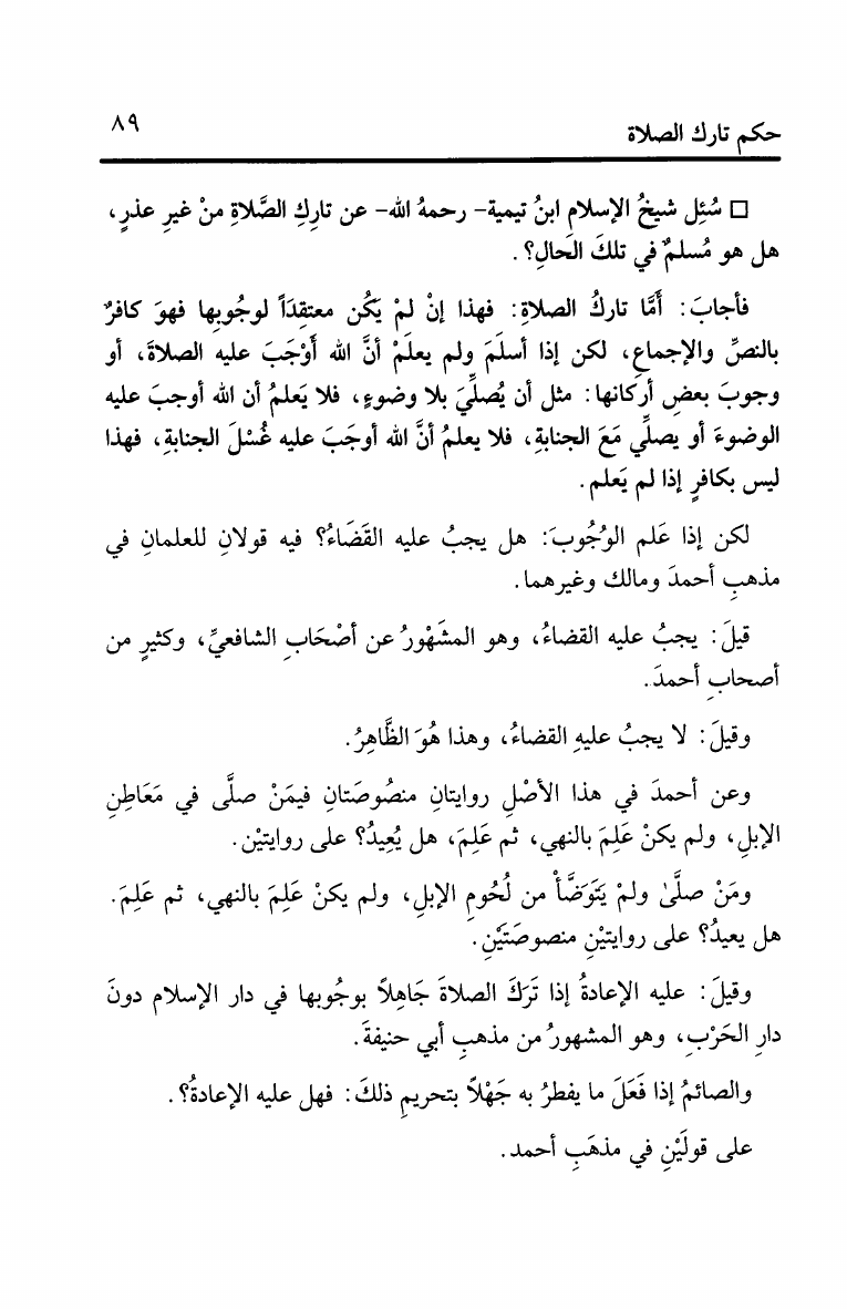 حكم تارك الصلاة
