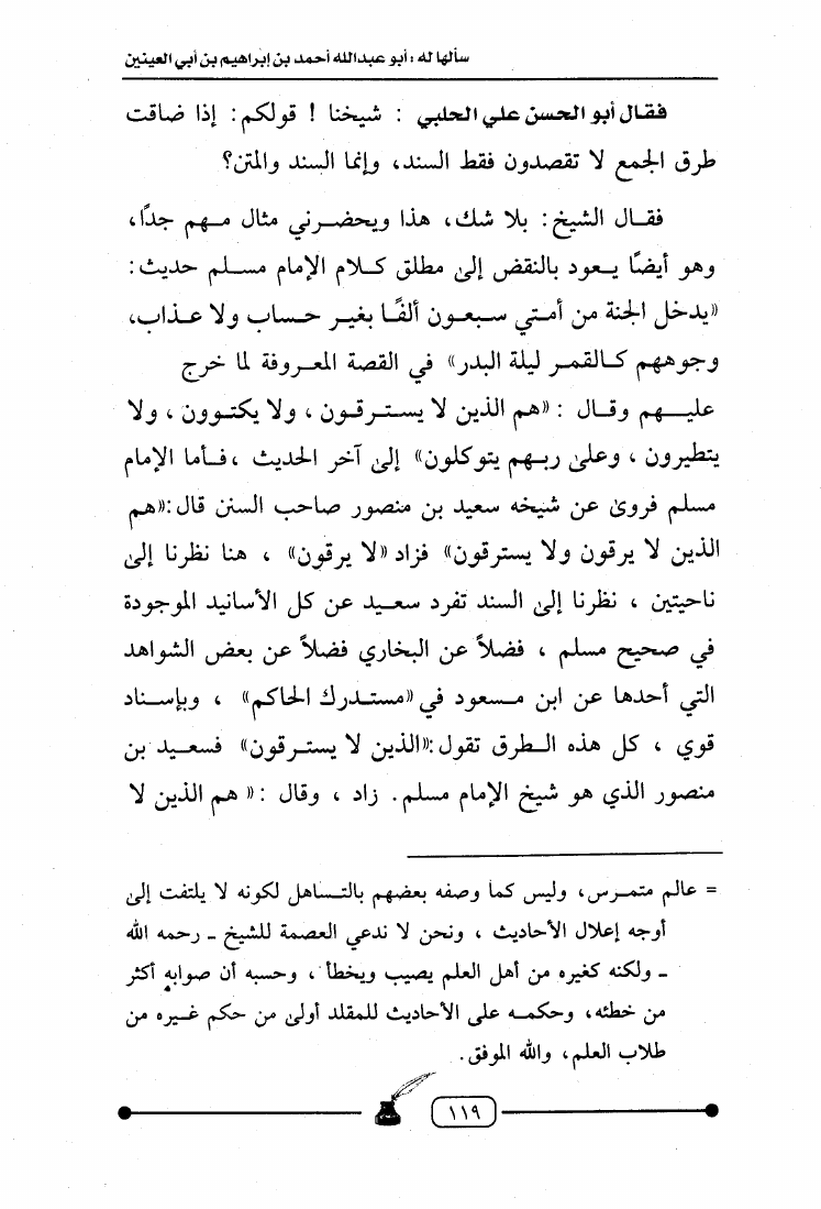 سؤالات للعلامة محدث العصر الألباني سألها له أبو عبد الله أحمد بن إبراهيم بن أبي العينين