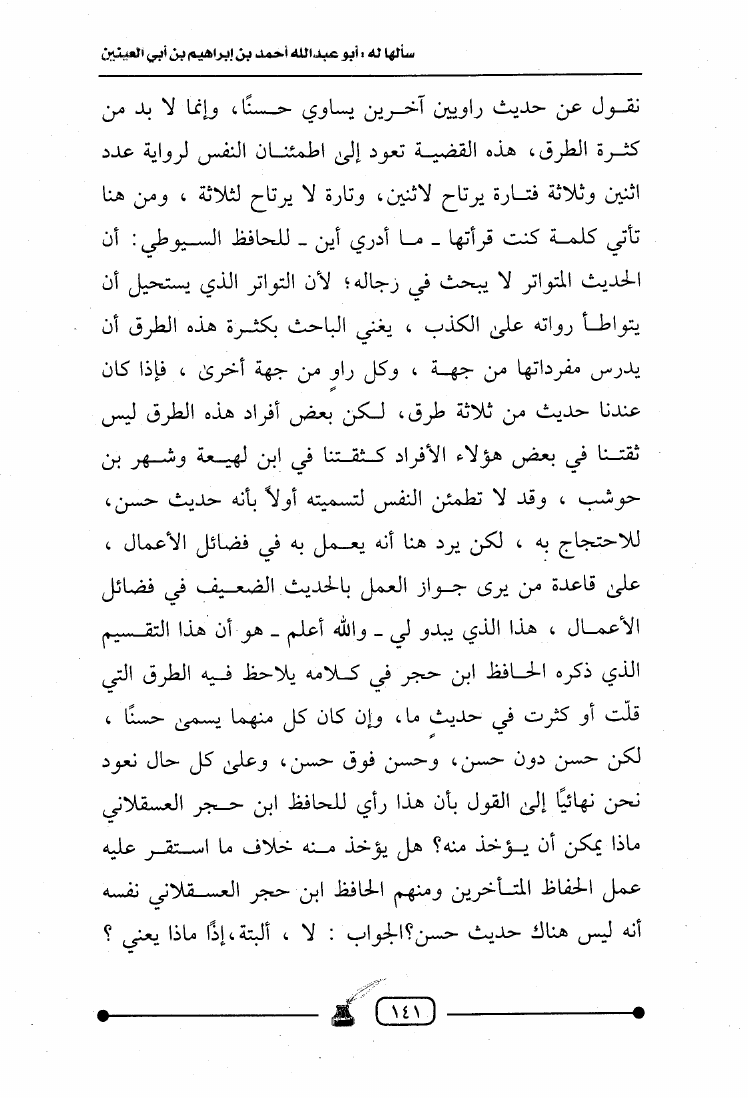 سؤالات للعلامة محدث العصر الألباني سألها له أبو عبد الله أحمد بن إبراهيم بن أبي العينين