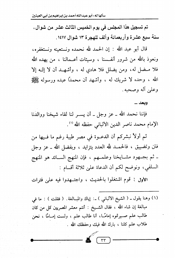 سؤالات للعلامة محدث العصر الألباني سألها له أبو عبد الله أحمد بن إبراهيم بن أبي العينين