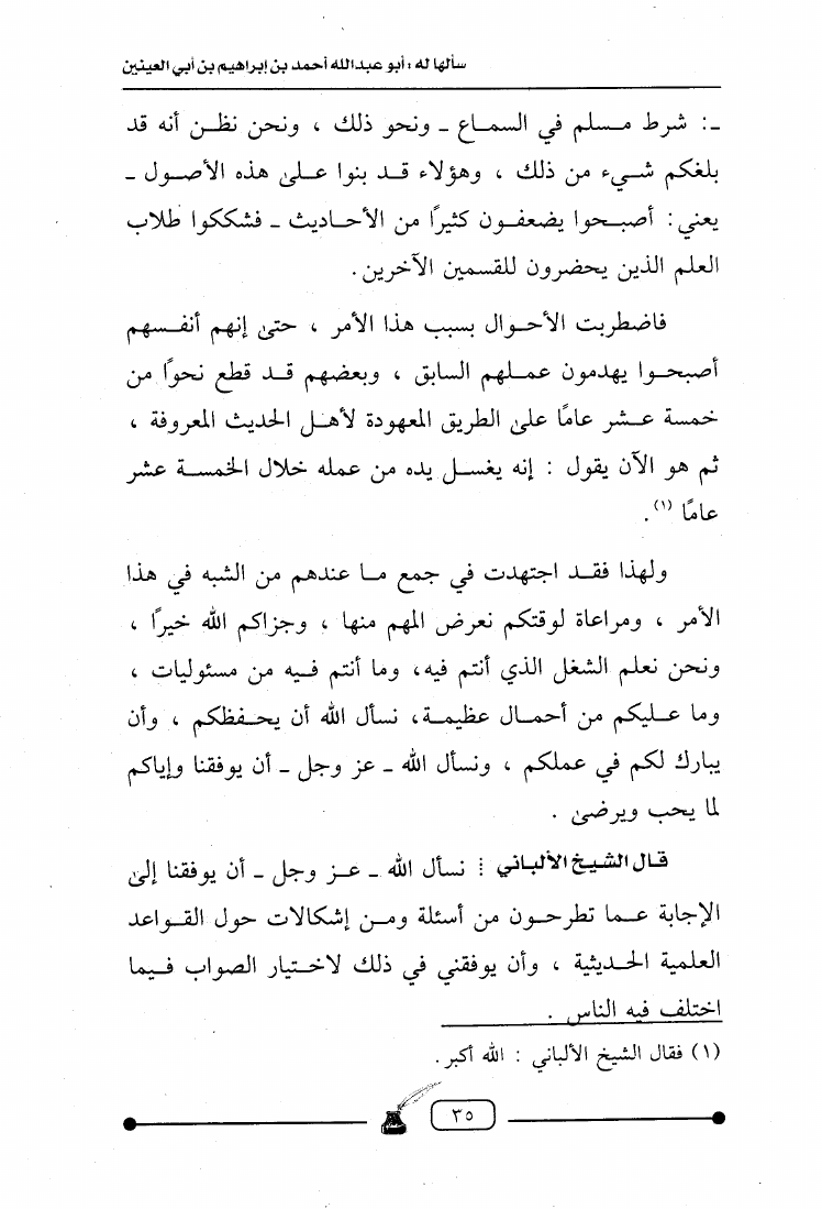 سؤالات للعلامة محدث العصر الألباني سألها له أبو عبد الله أحمد بن إبراهيم بن أبي العينين