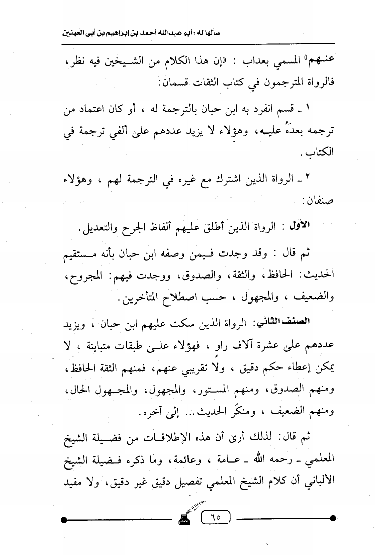 سؤالات للعلامة محدث العصر الألباني سألها له أبو عبد الله أحمد بن إبراهيم بن أبي العينين