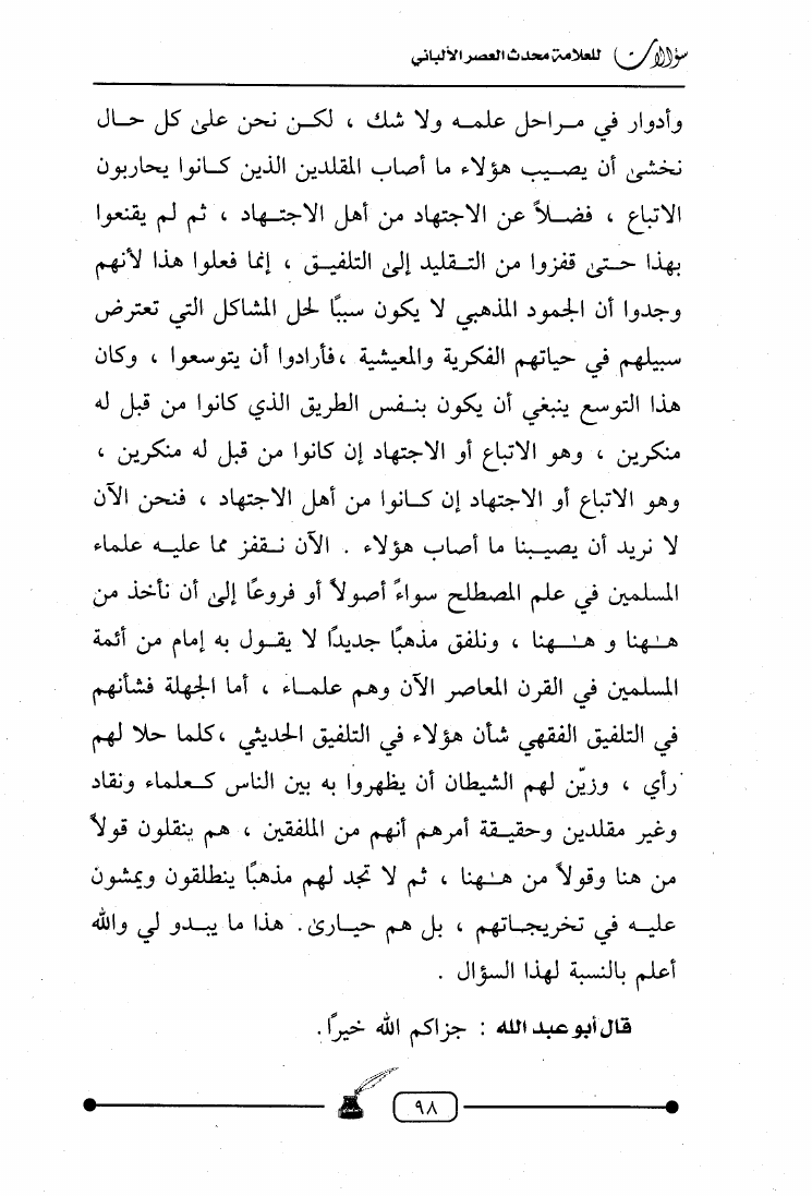 سؤالات للعلامة محدث العصر الألباني سألها له أبو عبد الله أحمد بن إبراهيم بن أبي العينين