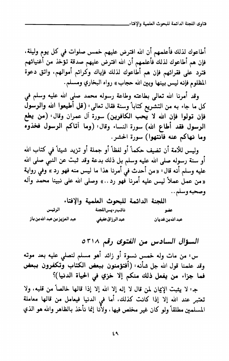 فتاوى اللجنة الدائمة للبحوث العلمية والإفتاء