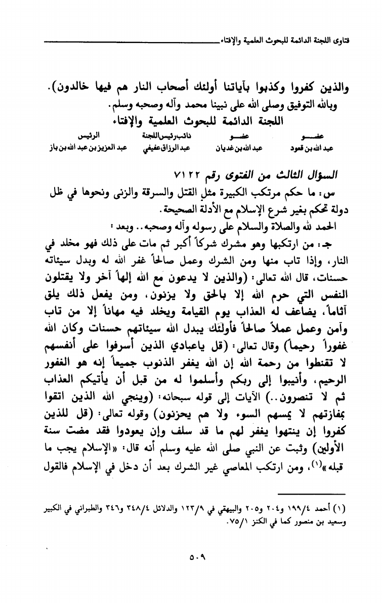 فتاوى اللجنة الدائمة للبحوث العلمية والإفتاء