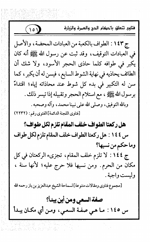 فتاوى تتعلق بأحكام الحج والعمرة والزيارة من فتاوى ابن باز واللجنة الدائمة (ط. الأوقاف السعودية)