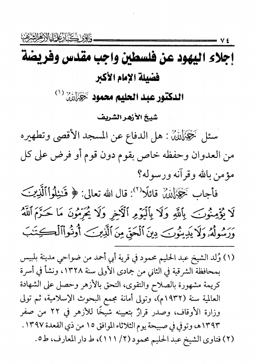 فتاوى كبار علماء الأزهر الشريف حول تحرير فلسطين والأقصى الشريف