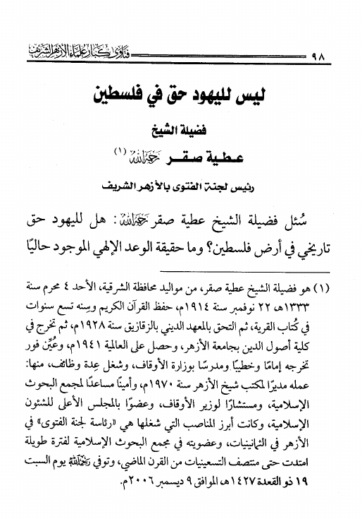 فتاوى كبار علماء الأزهر الشريف حول تحرير فلسطين والأقصى الشريف