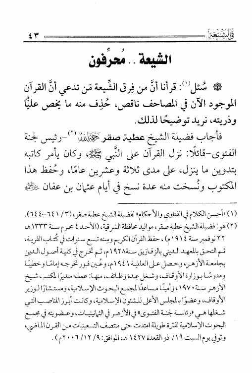 فتاوى كبار علماء الأزهر الشريف في الشيعة