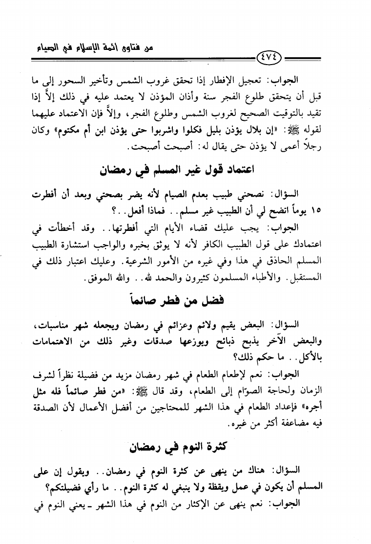 من فتاوى أئمة الإسلام في الصيام