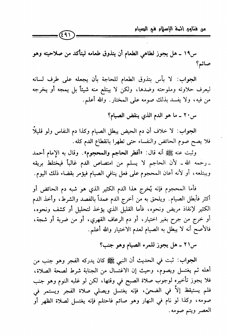 من فتاوى أئمة الإسلام في الصيام