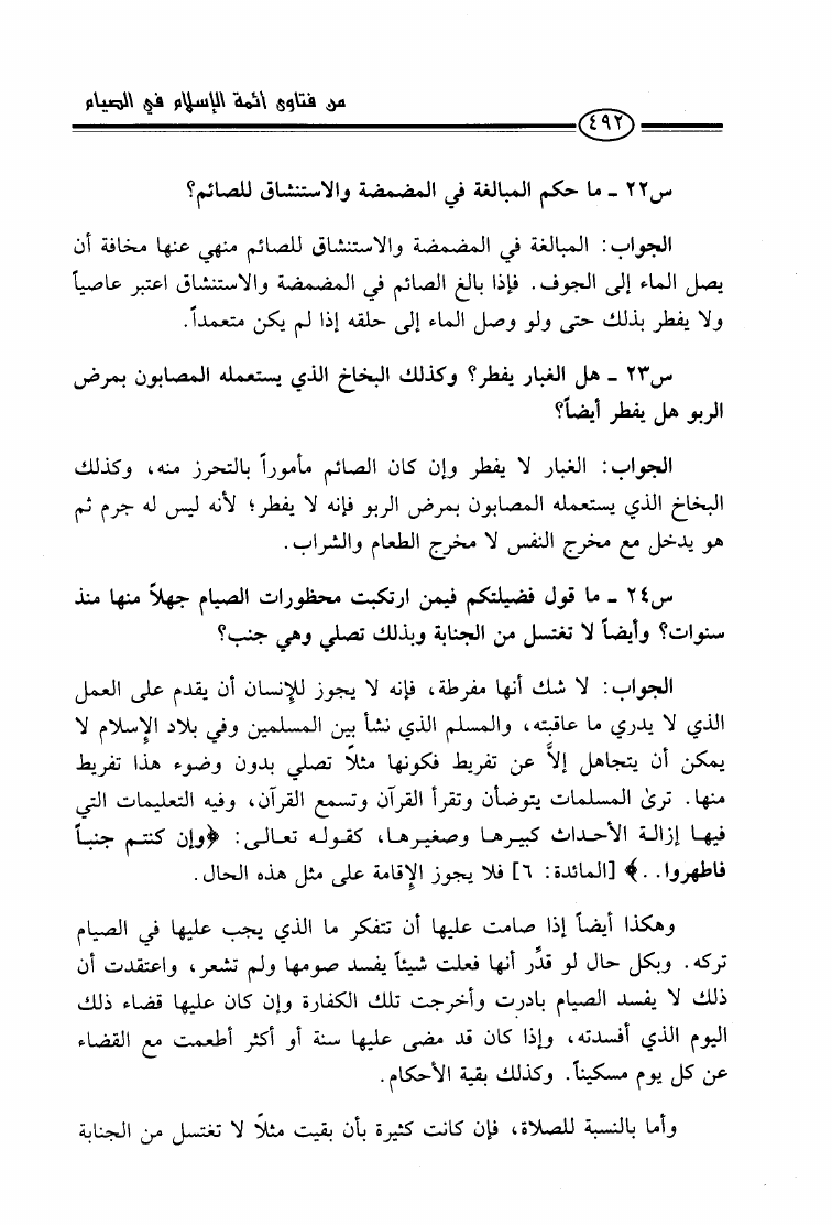من فتاوى أئمة الإسلام في الصيام