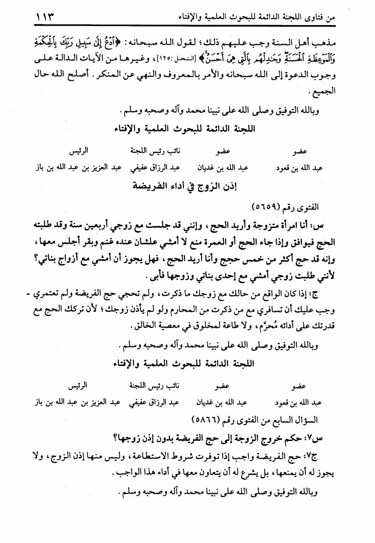 عبد العزيز بن عبد الله بن باز - محمد بن صالح العثيمين - اللجنة الدائمة للإفتاء