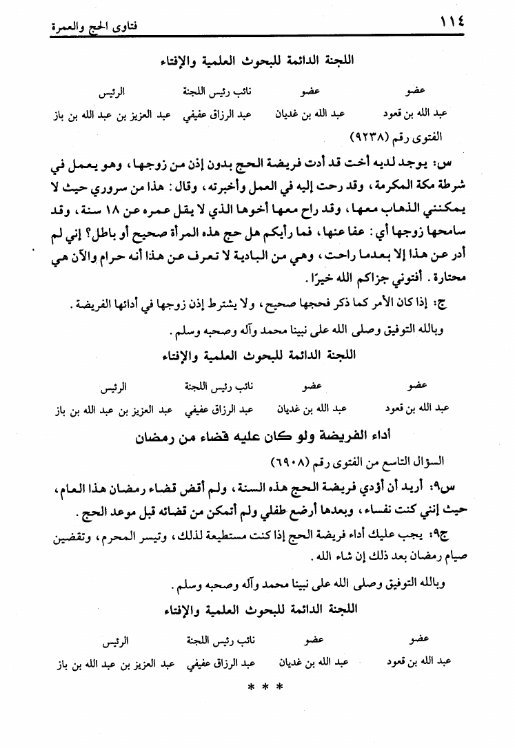 عبد العزيز بن عبد الله بن باز - محمد بن صالح العثيمين - اللجنة الدائمة للإفتاء