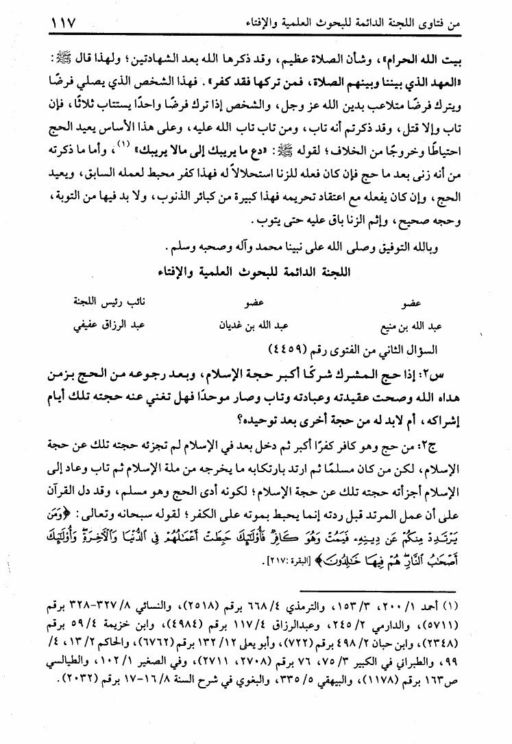 عبد العزيز بن عبد الله بن باز - محمد بن صالح العثيمين - اللجنة الدائمة للإفتاء