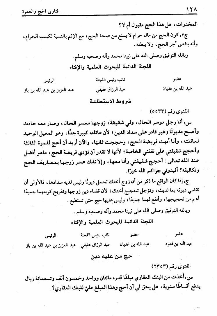 عبد العزيز بن عبد الله بن باز - محمد بن صالح العثيمين - اللجنة الدائمة للإفتاء