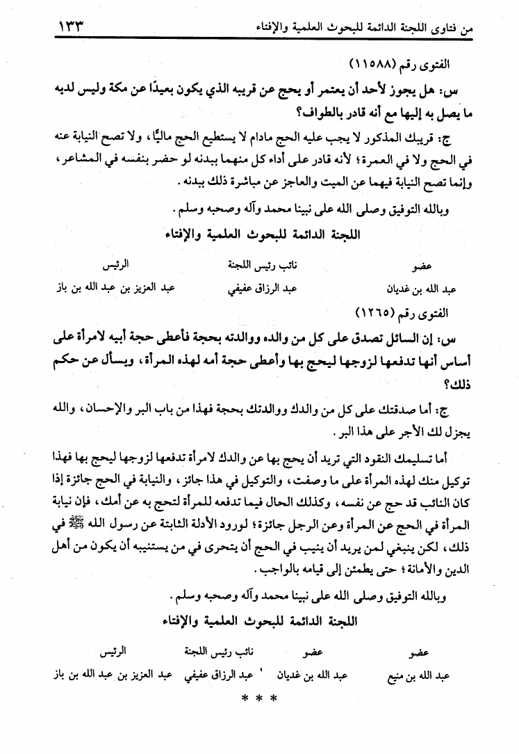عبد العزيز بن عبد الله بن باز - محمد بن صالح العثيمين - اللجنة الدائمة للإفتاء