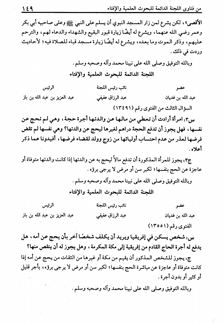 عبد العزيز بن عبد الله بن باز - محمد بن صالح العثيمين - اللجنة الدائمة للإفتاء