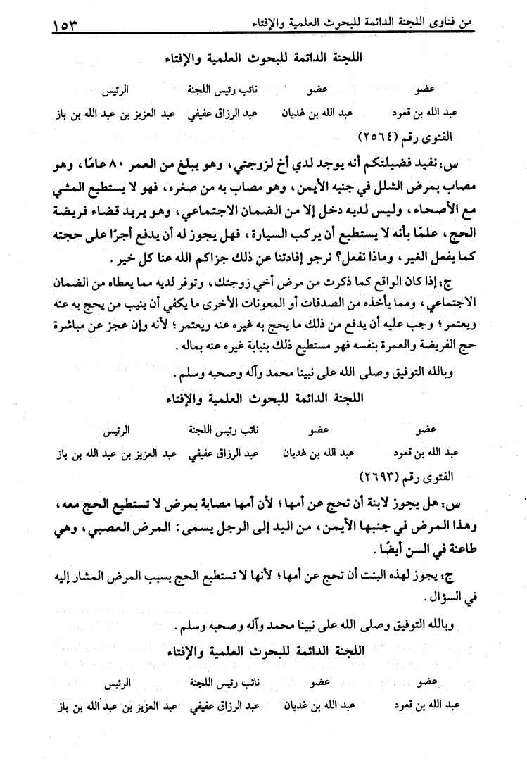 عبد العزيز بن عبد الله بن باز - محمد بن صالح العثيمين - اللجنة الدائمة للإفتاء