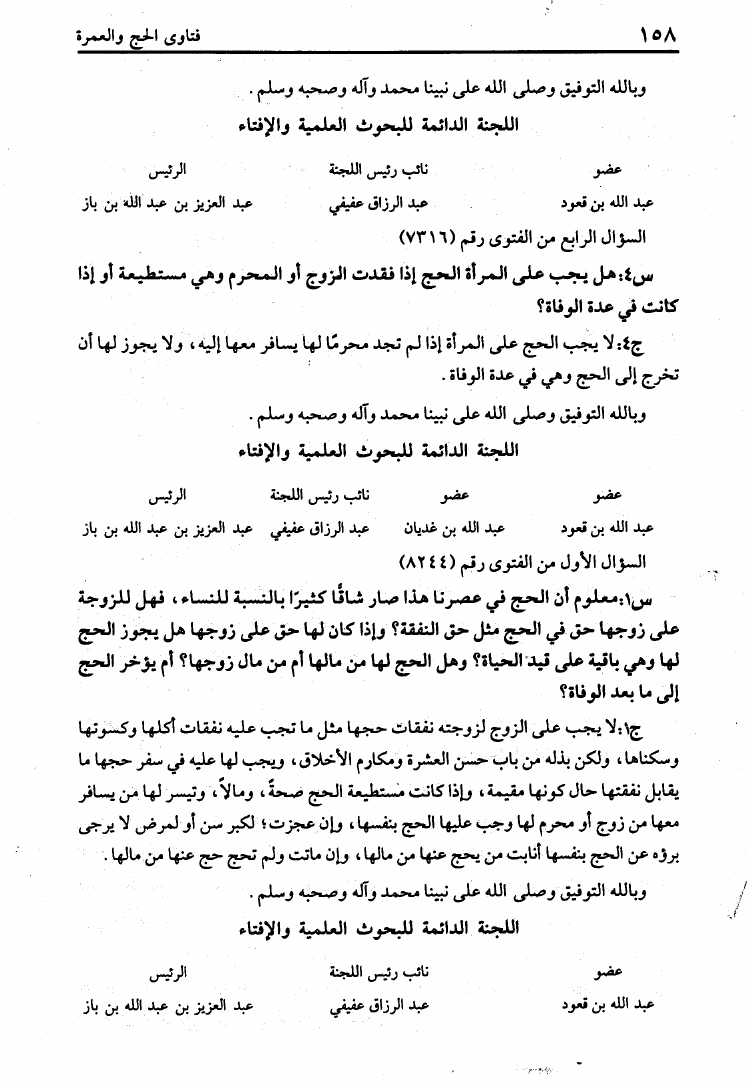 عبد العزيز بن عبد الله بن باز - محمد بن صالح العثيمين - اللجنة الدائمة للإفتاء