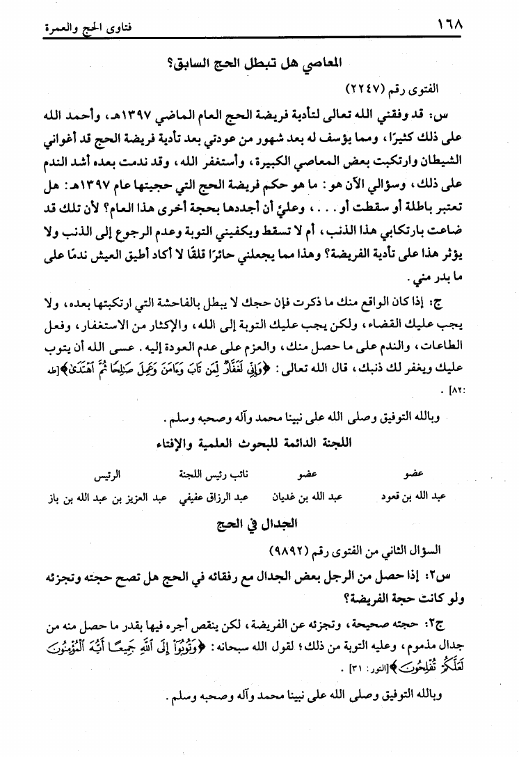 عبد العزيز بن عبد الله بن باز - محمد بن صالح العثيمين - اللجنة الدائمة للإفتاء