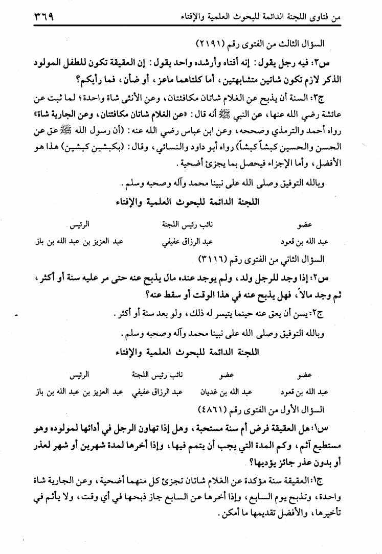 عبد العزيز بن عبد الله بن باز - محمد بن صالح العثيمين - اللجنة الدائمة للإفتاء