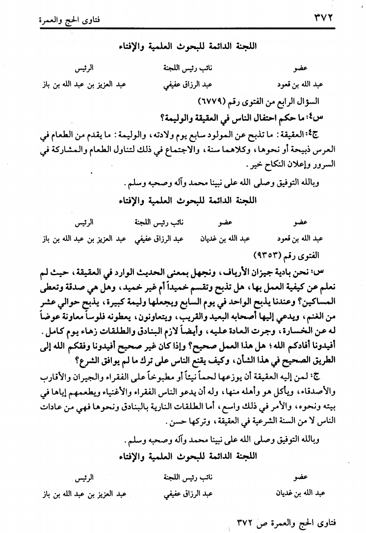 عبد العزيز بن عبد الله بن باز - محمد بن صالح العثيمين - اللجنة الدائمة للإفتاء