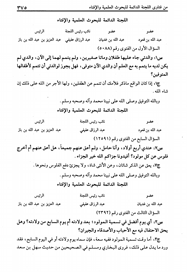 عبد العزيز بن عبد الله بن باز - محمد بن صالح العثيمين - اللجنة الدائمة للإفتاء