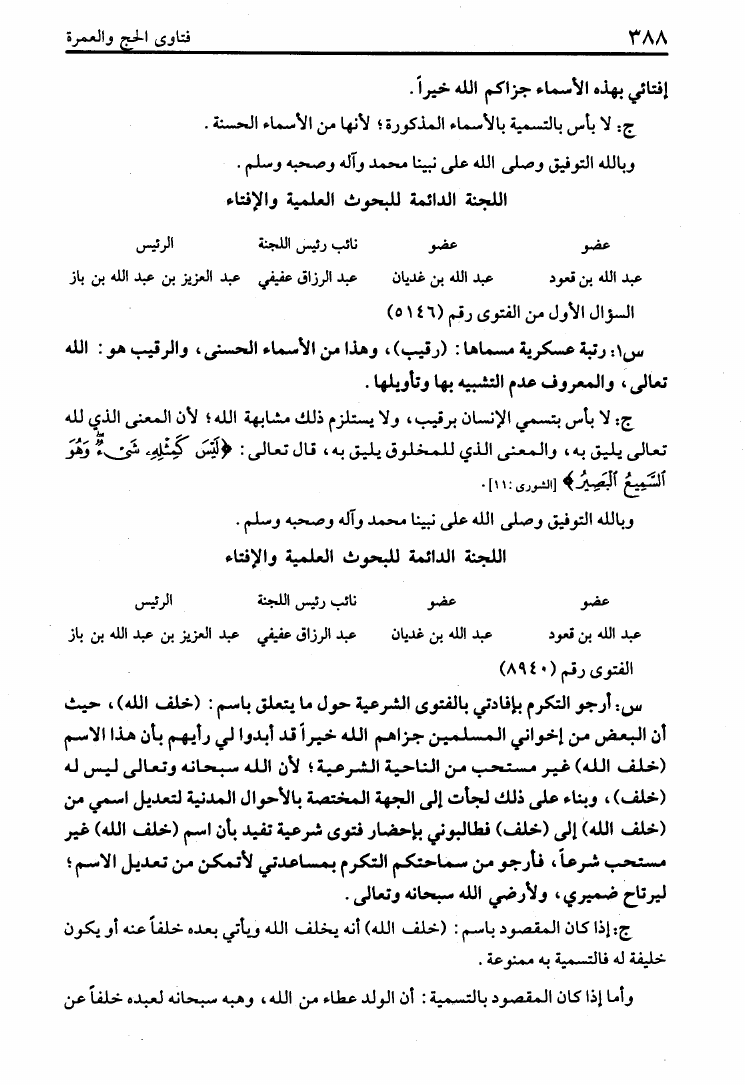 عبد العزيز بن عبد الله بن باز - محمد بن صالح العثيمين - اللجنة الدائمة للإفتاء