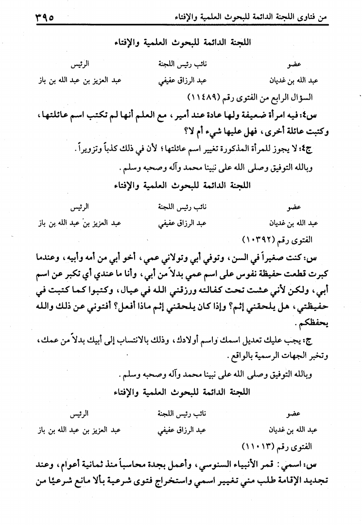 عبد العزيز بن عبد الله بن باز - محمد بن صالح العثيمين - اللجنة الدائمة للإفتاء