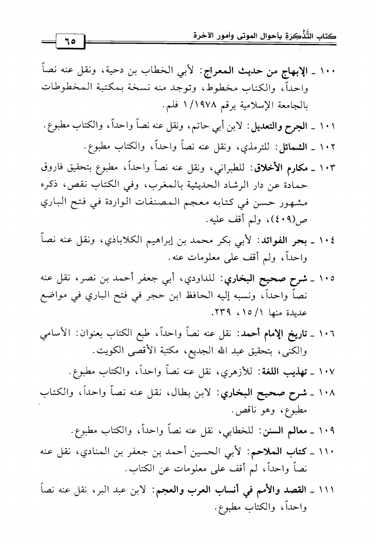 التذكرة بأحوال الموتى وأمور الآخرة (ط. المنهاج)