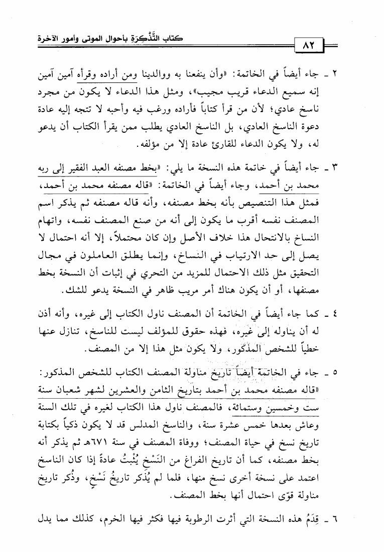 التذكرة بأحوال الموتى وأمور الآخرة (ط. المنهاج)