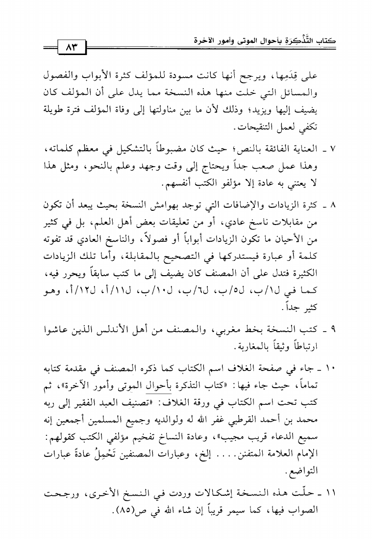 التذكرة بأحوال الموتى وأمور الآخرة (ط. المنهاج)