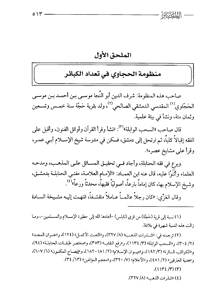 محمد بن أحمد بن عثمان الذهبي أبو عبد الله شمس الدين - موسى بن أحمد بن موسى الحجاوي أبو النجا - أحمد بن هارون البرديجي - مشهور بن حسن آل سلمان أبو عبيدة