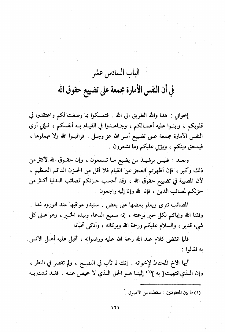 نام کتاب : الوصايا (النصائح الدينية والنفحات القدسية): النصائح - القصد والرجوع إلى الله - بدء من أناب إلى الله - فهم الصلاة - التوهم نویسنده : الحارث المحاسبي جلد : 1 صفحه : 121