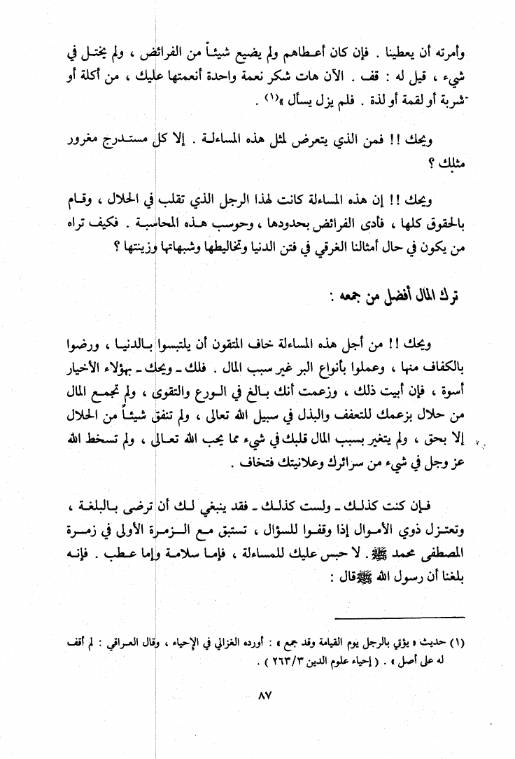 نام کتاب : الوصايا (النصائح الدينية والنفحات القدسية): النصائح - القصد والرجوع إلى الله - بدء من أناب إلى الله - فهم الصلاة - التوهم نویسنده : الحارث المحاسبي جلد : 1 صفحه : 87