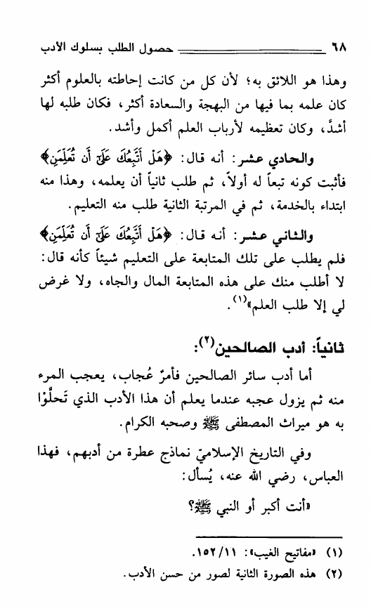حصول الطلب بسلوك الأدب وسلوك الأدب جمال الحياة