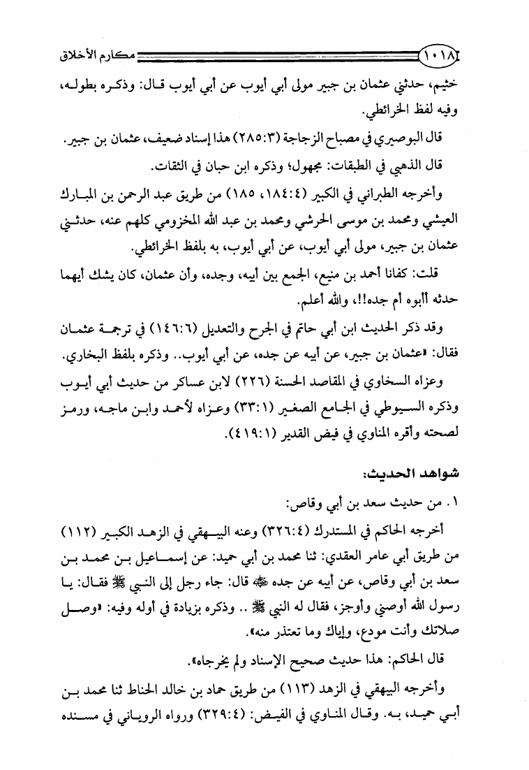 مكارم الأخلاق ومعاليها ومحمود طرائقها