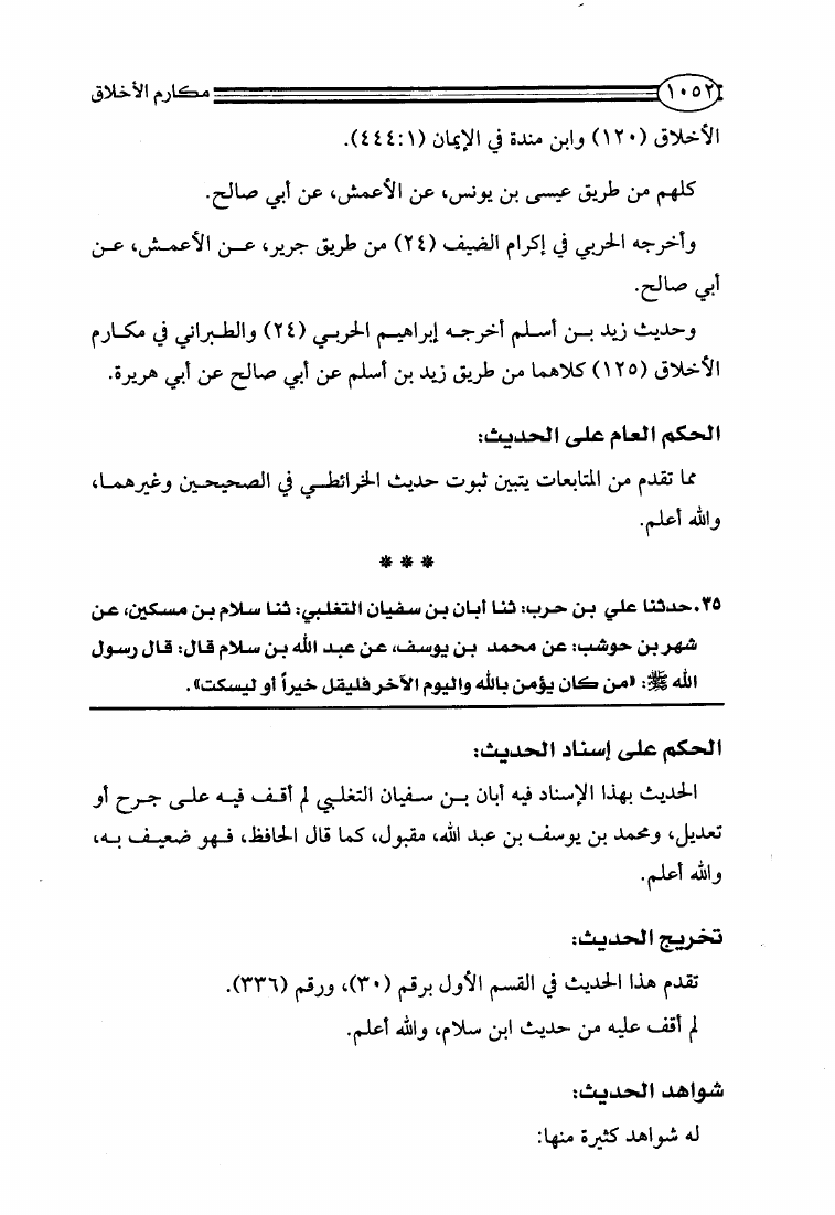 مكارم الأخلاق ومعاليها ومحمود طرائقها