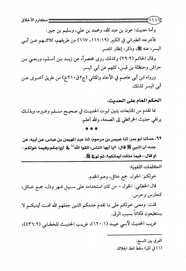 مكارم الأخلاق ومعاليها ومحمود طرائقها