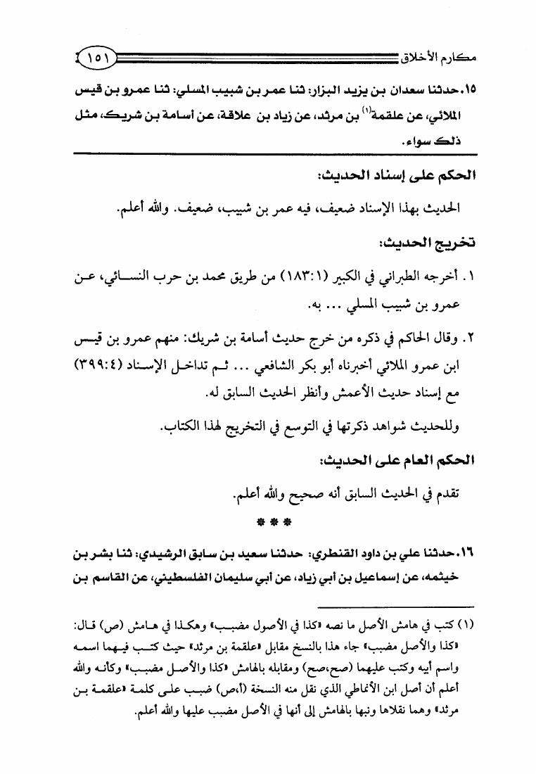 مكارم الأخلاق ومعاليها ومحمود طرائقها