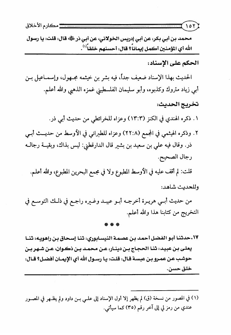مكارم الأخلاق ومعاليها ومحمود طرائقها