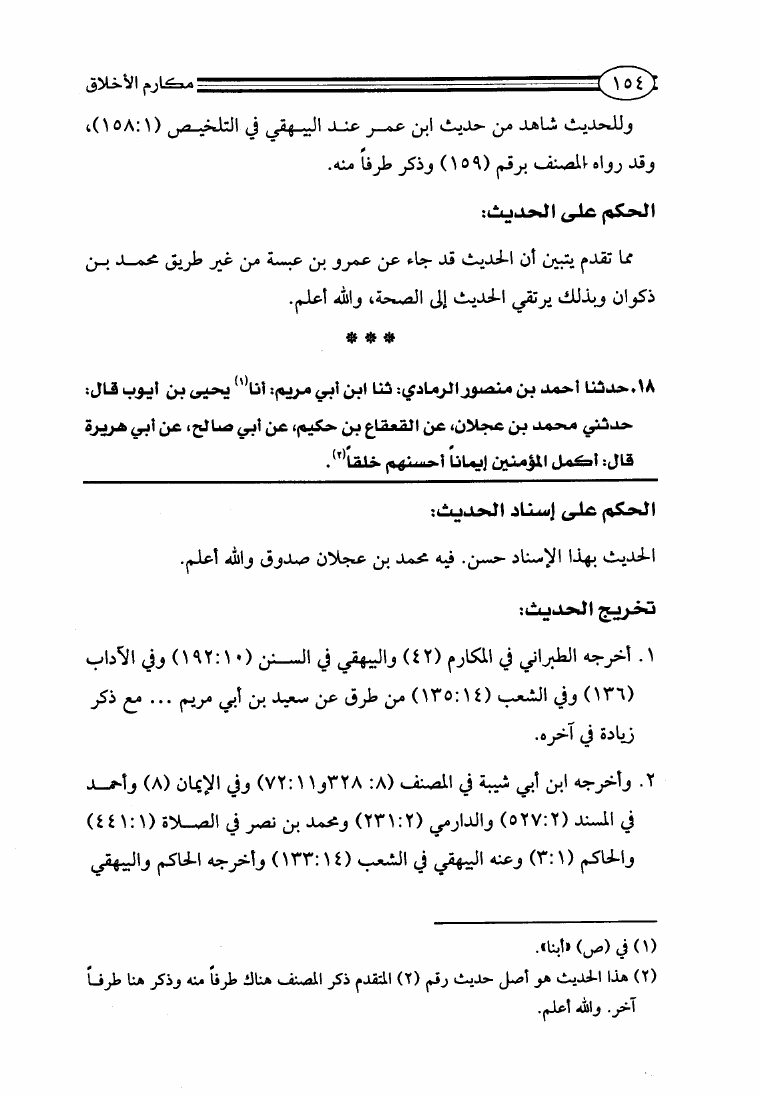 مكارم الأخلاق ومعاليها ومحمود طرائقها