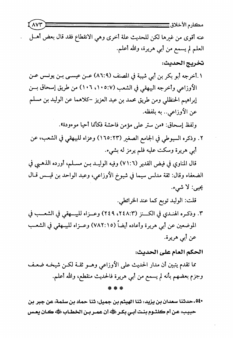 مكارم الأخلاق ومعاليها ومحمود طرائقها