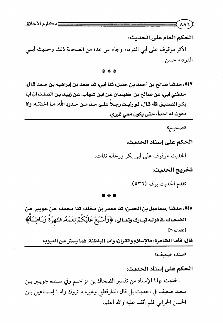 مكارم الأخلاق ومعاليها ومحمود طرائقها