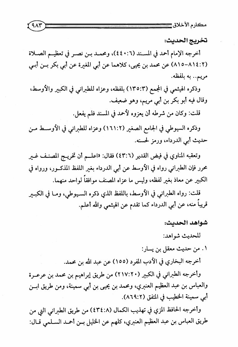 مكارم الأخلاق ومعاليها ومحمود طرائقها