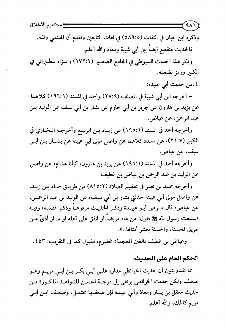 مكارم الأخلاق ومعاليها ومحمود طرائقها