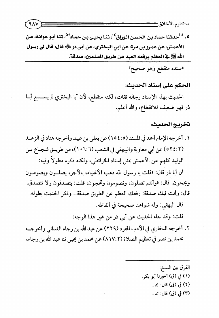 مكارم الأخلاق ومعاليها ومحمود طرائقها