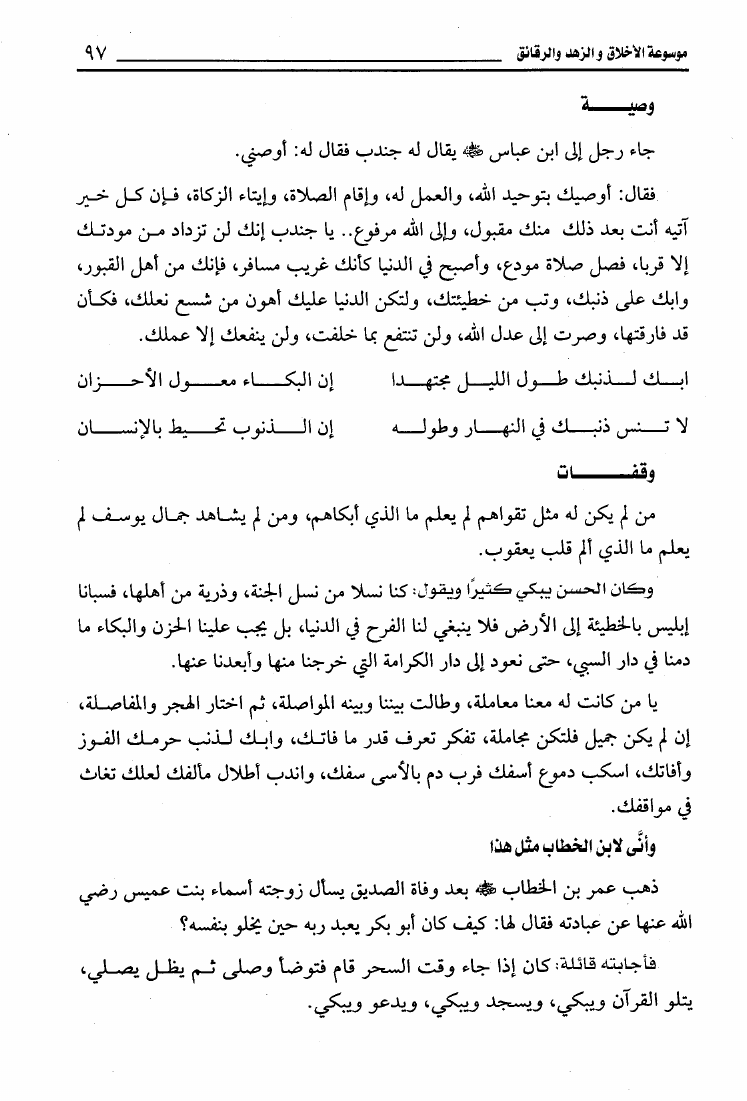 موسوعة الأخلاق والزهد والرقائق (قصص تربوية من حياة الأنبياء والصحابة والتابعين والصالحين)
