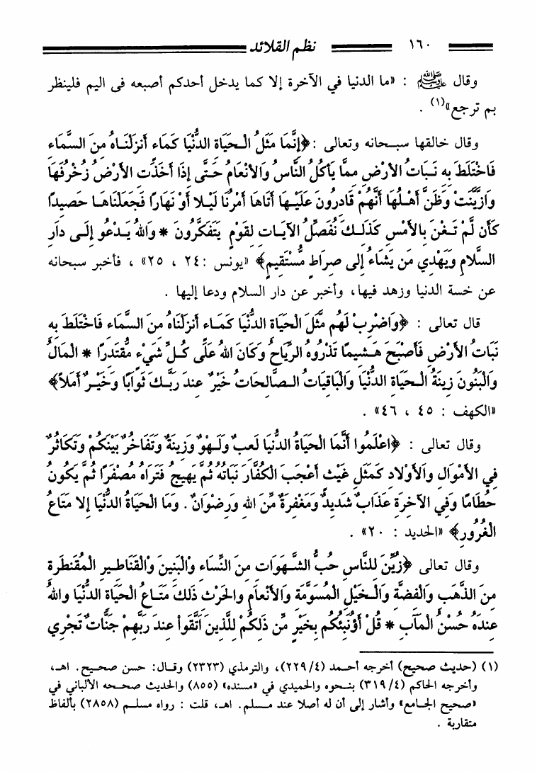 نظم القلائد في ترتيب كتاب الفوائد للإمام ابن القيم مبوبا على أبواب شعب الإيمان والأخلاق